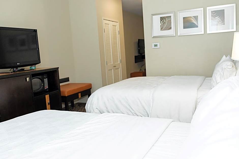 Featuring free toiletries, this suite includes a private bathroom with a bath, a shower and a hairdryer. The suite has carpeted floors, a seating area with a flat-screen TV with cable channels, air conditioning, a private entrance, as well as a tea and coffee maker. The unit has 2 beds.